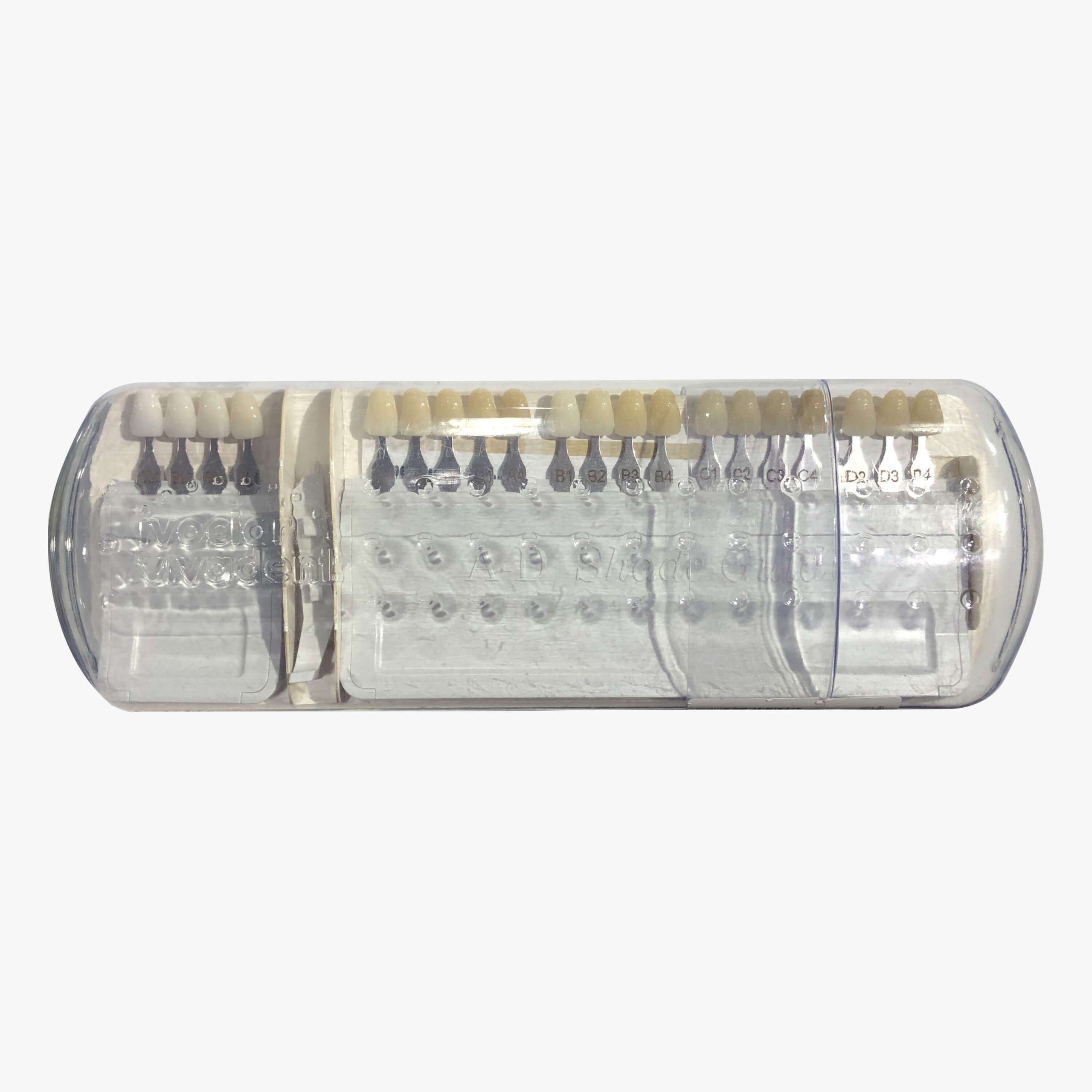 در نظر داشته باشید که پس از هر بار استفاده و تعیین رنگ (شید) دندان های بیمار، نمونه رنگ دندان را ضد عفونی کنید