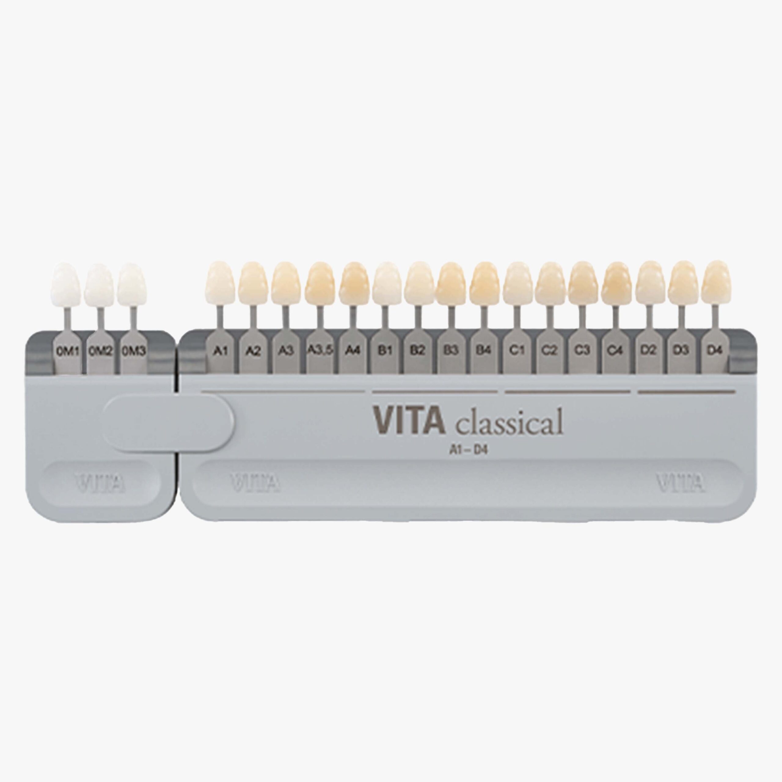 نمونه رنگ ویتا مدل VITA classical A1-D4 یکی از ابزارهای اساسی برای تشخیص و انتخاب رنگ دقیق دندانها در ترمیمهای دندانی است. این محصول که توسط شرکت ویتا (VITA Zahnfabrik) تولید شده است، انتخاب دقیقی از طیف رنگهای طبیعی دندانها را به دندانپزشکان و تکنسینهای دندانپزشکی ارائه میدهد.