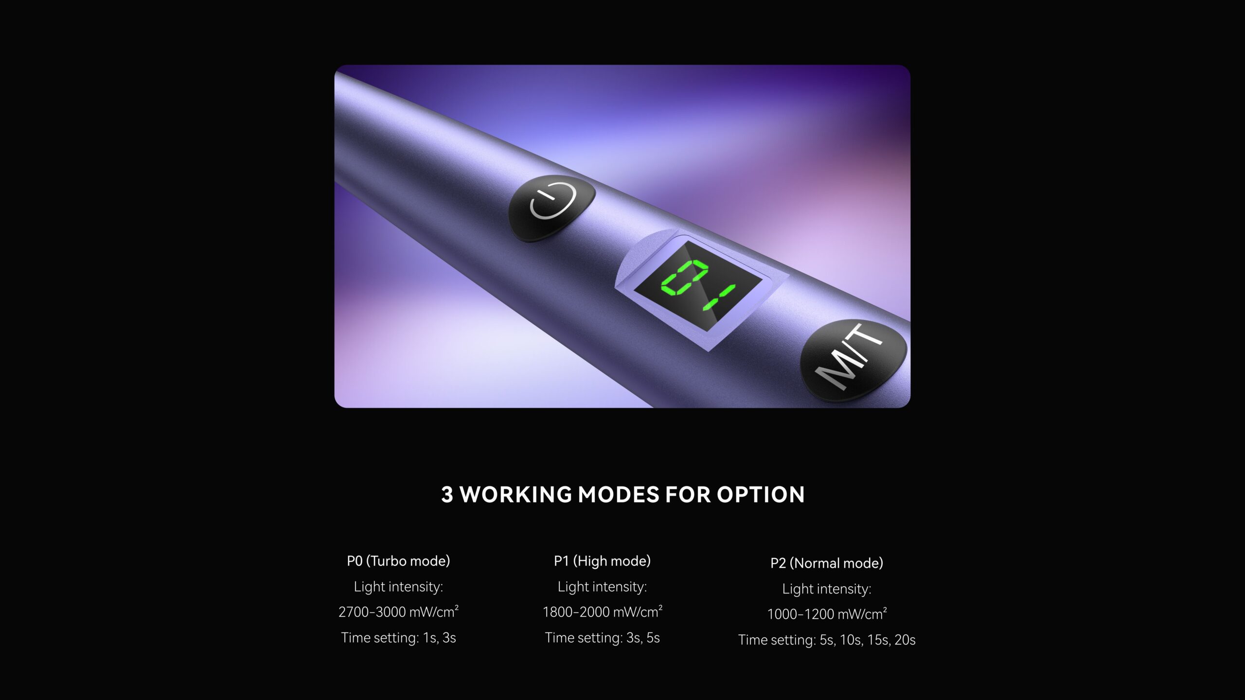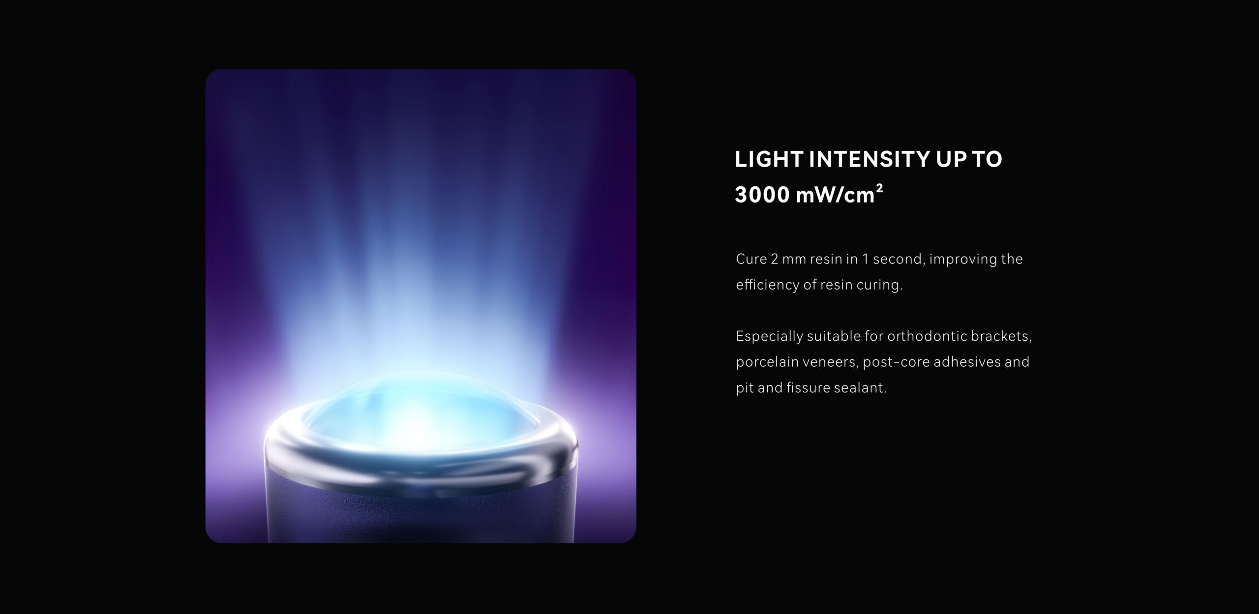 - شدت نور بالا: 1000 تا 3000 میلیوات بر سانتیمتر مربع برای پلیمریزاسیون سریع.
